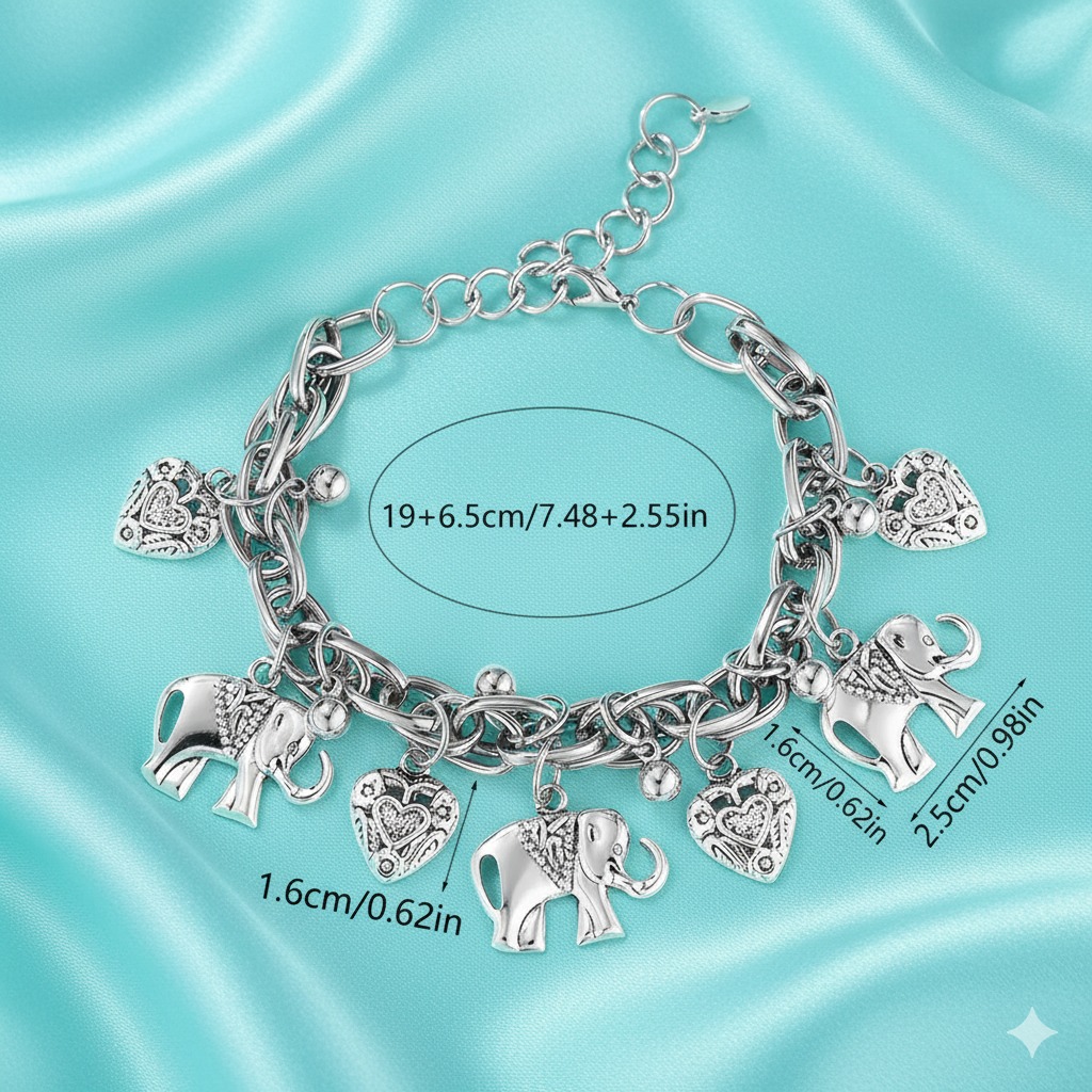 Elephant and heart anklet made of zinc alloy.